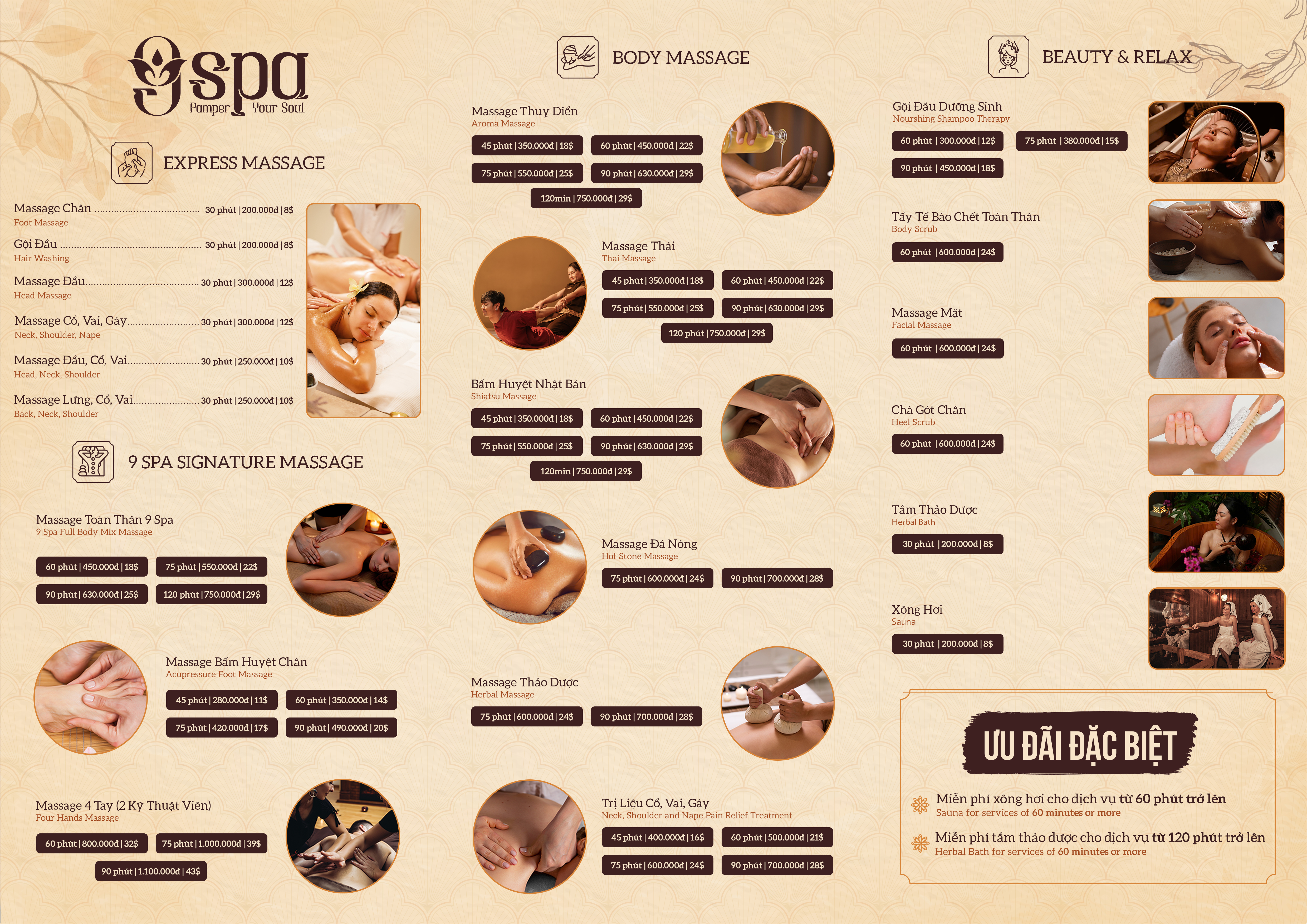 Nhiều khách hàng chia sẻ về sự chuyên nghiệp của kỹ thuật viên, chất lượng dịch vụ vượt mong đợi và bầu không khí thư giãn dễ chịu. Những phản hồi này khẳng định trải nghiệm tại 9SPA không chỉ giúp thư giãn cơ thể mà còn mang lại sự hài lòng toàn diện về tinh thần.